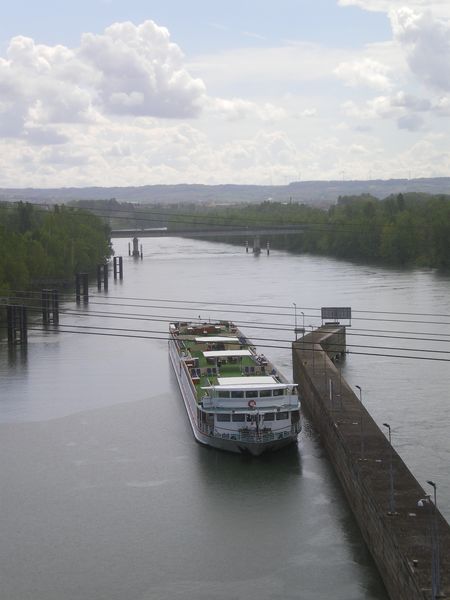 Le P de P (Princesse de Provence) est arrive sur le Rhone pour prendre la suite du Fleur du Rhone, qui a fini tristement sa courte carriere au pont de la Voulte, apres seulement deux voyages.Le Rhone n'est pas le Canal du Nord! Et suite a cette incident (il n'y a pas eu de mort),la commission de surveillance a prit des mesures :lorsque le PHEN est atteint,les plaisances, ainsi que les voyageurs n'ont plus le droit circuler sur le Rhone.Mais vu le nombre de boots de voyageurs,et le peu de capitaines aptes a conduire ses grosses unites,je redoute le pire.C'est une autre histoire. Donc,je reviens au P de P : 110 X 11,20 a la societe Peter Deilmann. Ce boot est sous pavillon Allemand,il pourrait etre Suisse, car il est regle comme une horloge ; Sablons montant le vendredi vers midi,avalant a 2h15 le mardi, cela depuis 17 ou 18 ans