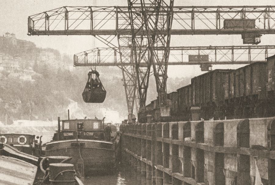 Photo parue dans le livre "Le port Rambaud à Lyon", édité par la chambre de commerce de Lyon en 1956.