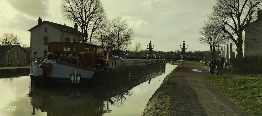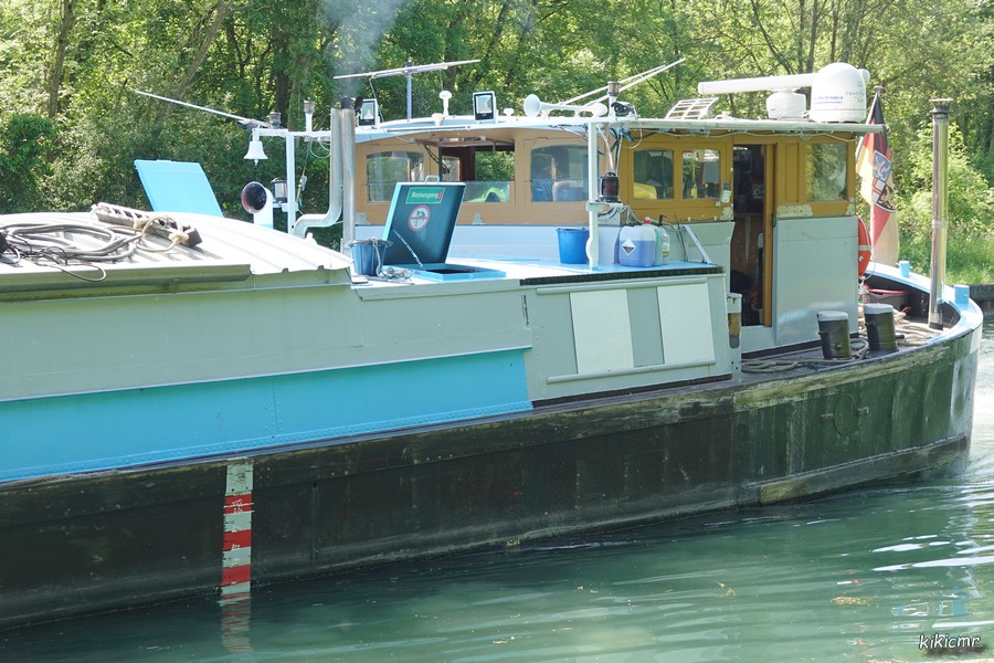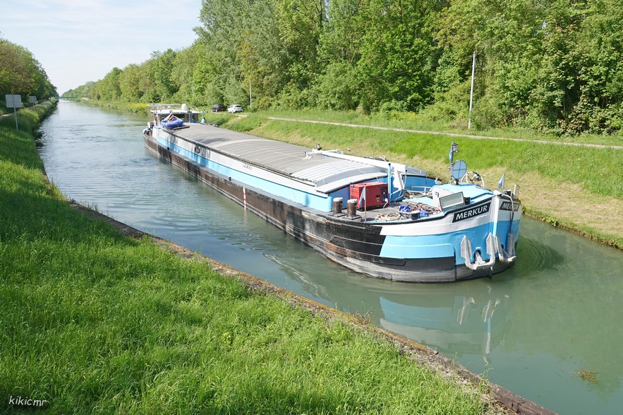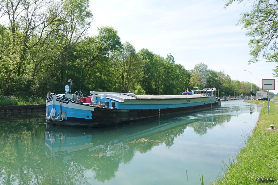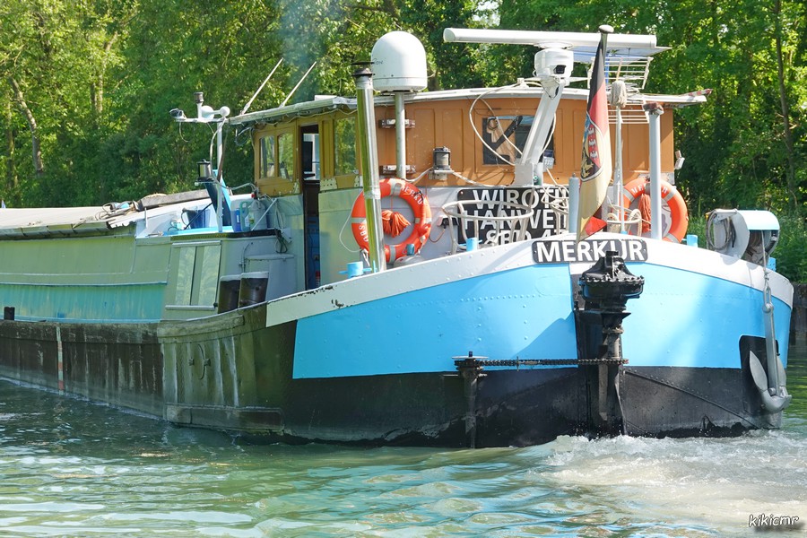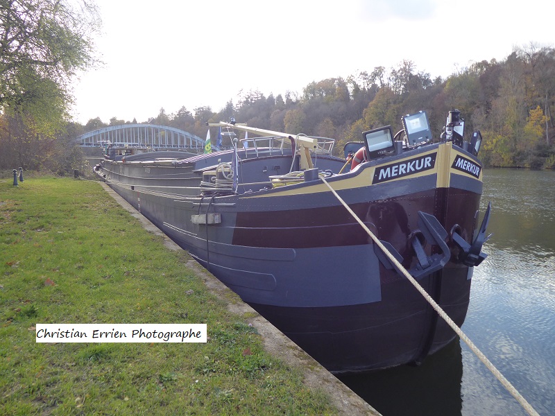 MERKUR avait coulé dans une écluse du canal des Ardennes ! Et en regardant bien, le bateau de la photo a de l'eau sur le plat-bord :