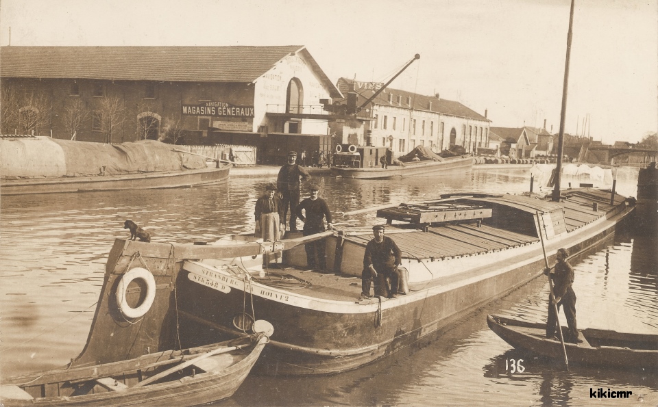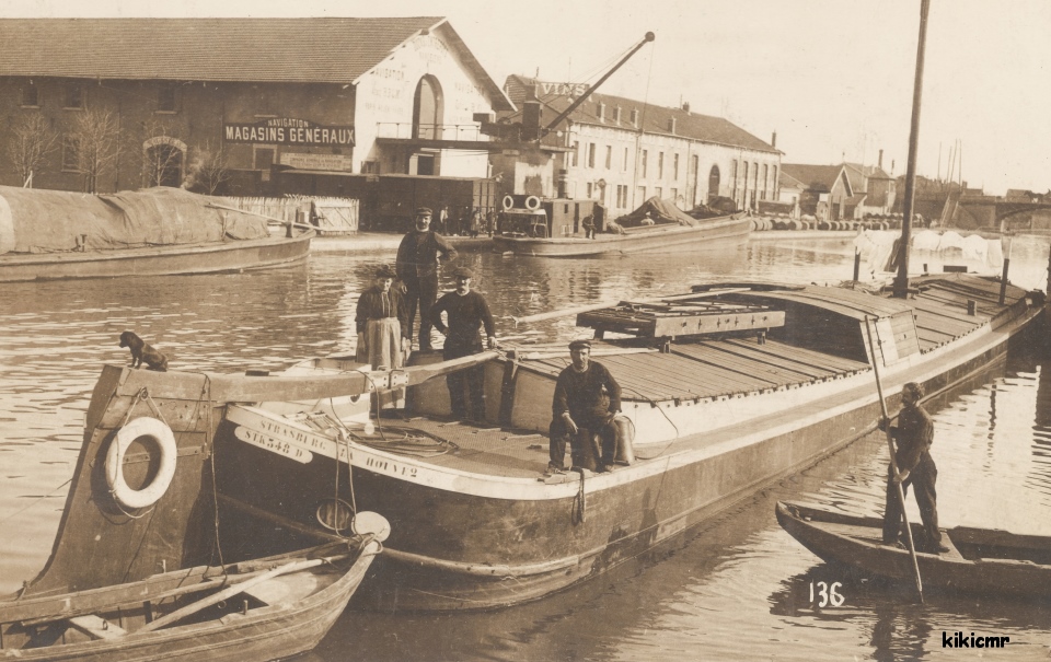 Le bateau, LA HOUVE 2, a pour port d'attache Strasbourg, orthographié Strasburg ; son matricule du temps de l'Alsace annexée est bien lisible, ST.K 348 D, un matricule de Straßburg-Kanal - Deutschland (ou plutôt Straßburg-Kanäle - Deutschland, au pluriel ? puisqu'en français c'est Strasbourg-canaux).