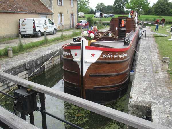 Il est maintenant stationné à l'aval de l'écluse du bas à Grignon.