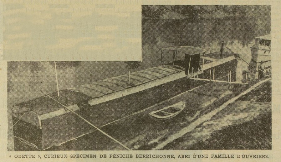 Un article du journal l'Excelsior du lundi 13 juin 1938, de Claude Korbé, consacré à une famille vivant sur un berrichon transformé en logement ; le journaliste l'a trouvé en longeant la rive droite de la Seine, en amont de Neuilly (c'est écrit dans le journal de la veille) :