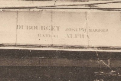 Y a une plaque blanche sur l'avant, sur laquelle on arrive à lire *LPHA, on aurait donc pu deviner que ce bateau s'appelle ALPHA, mais grâce aux inscriptions portées sur sa bâche, c'est beaucoup plus précis :