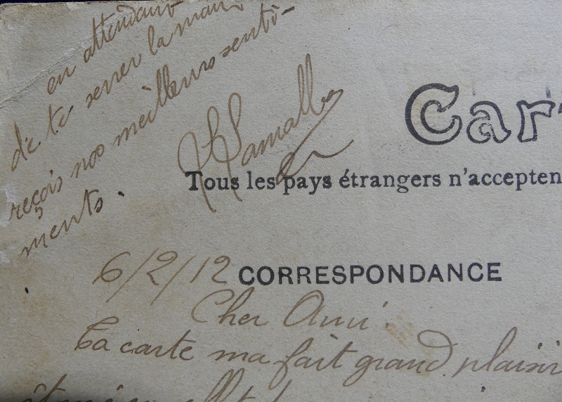 je possède aussi cette carte du chantier Lamalle avec une particularité c'est qu'elle a été écrite par son propriétaire. Voici la correspondance