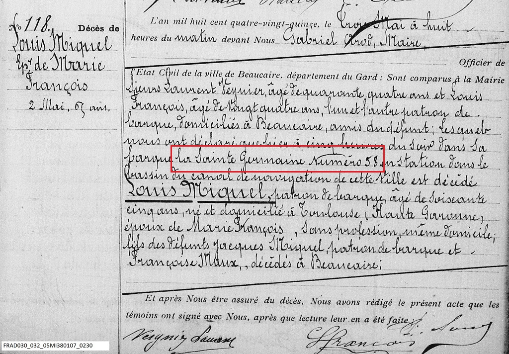 Le bateau est ensuite vendu à la famille Mondaine-Miquel à Beaucaire.