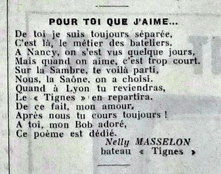 roger 51 a écrit:...je suis aussi en mesure de dire que le bateau à quai est le TIGNES. Cette carte doit être de 1964 : après sa motorisation, il a fait quelques voyages avec cette bâche posée sur des bouts de bois et tenue avec des bouts de ficelle, avant d'avoir une marquise fabriquée par mon père