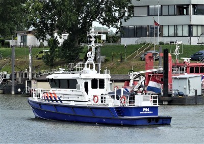P 94 , 19,95 x 4,96 , Bouwjaar 2008 , Werf Damen Shipyards in Gorinchem ( Nederland ) , 2 x 650 pk Volvo Penta , eigenaar KLPD in Nijmegen.