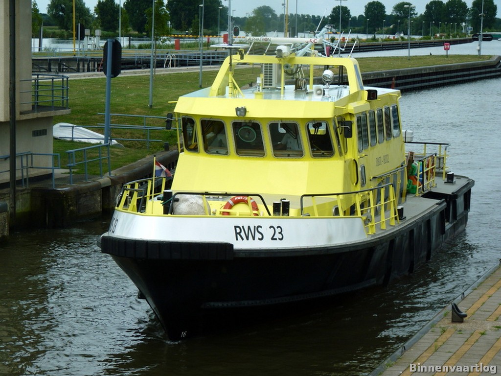 RWS 23 , 21,75 x 5,59 x 1,65 , 2 x 534 pk MTU , Bouwjaar 1991 , Werf Damen Shipyard in Gorinchem ( Nederland ) , ex RP 9 , ex P 82 , eigenaar Rijkswaterstaat Rijksrederij in Rijswijk (ZH).