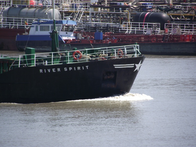 Un petit caboteur, le RIVER SPIRIT : 52 x 10 m. 1412 T Construit en 1986, pavillon anglais. Il a bien un n) maritime IMO