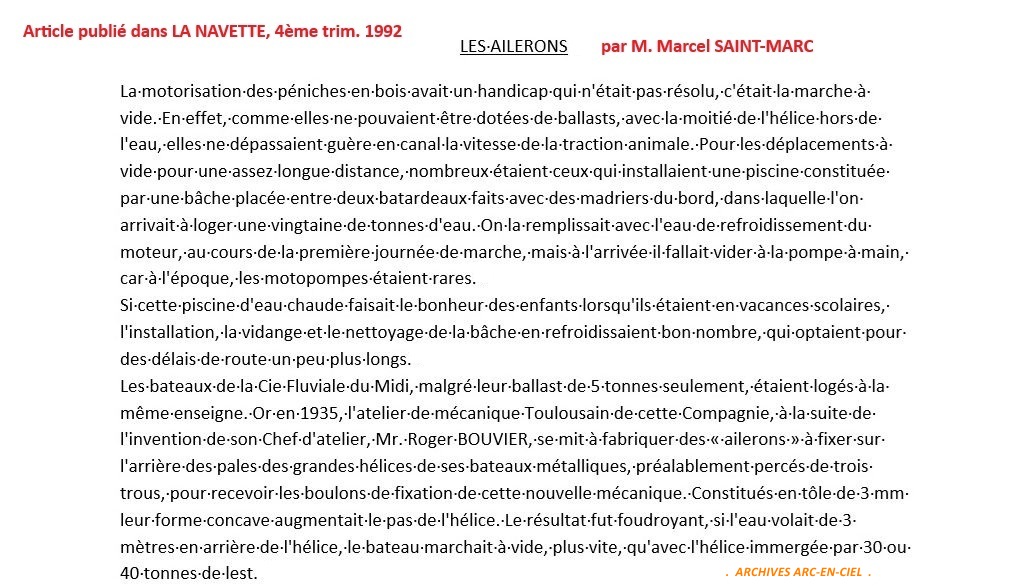 Voici un article publié dans la revue La Navette par une personnalité du canal, Monsieur Marcel Saint-Marc.