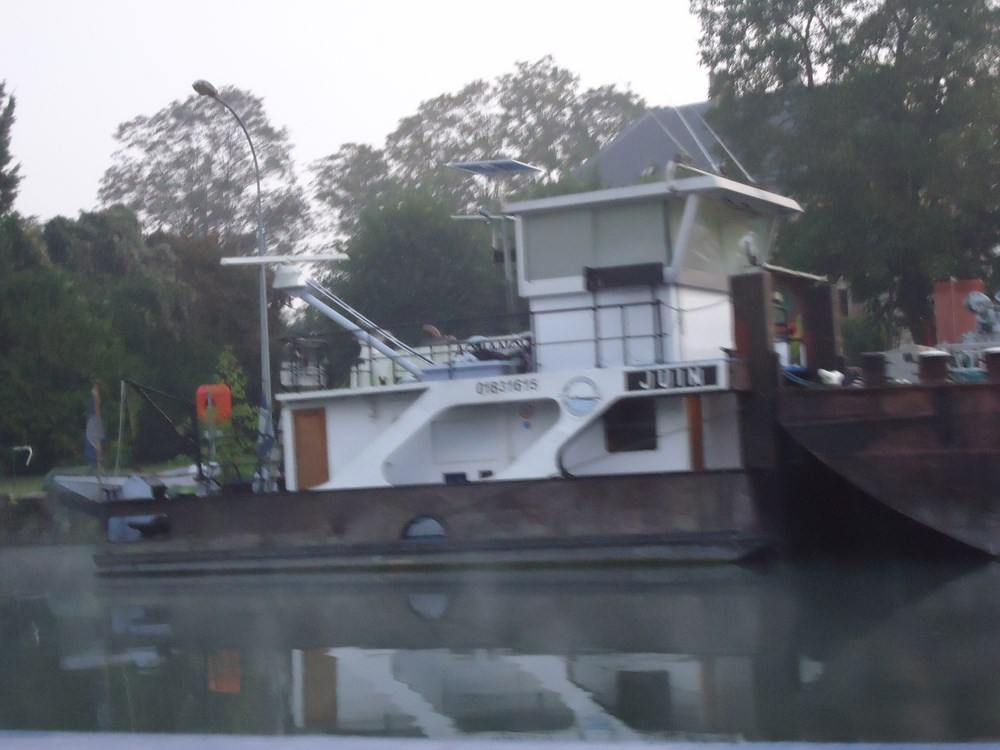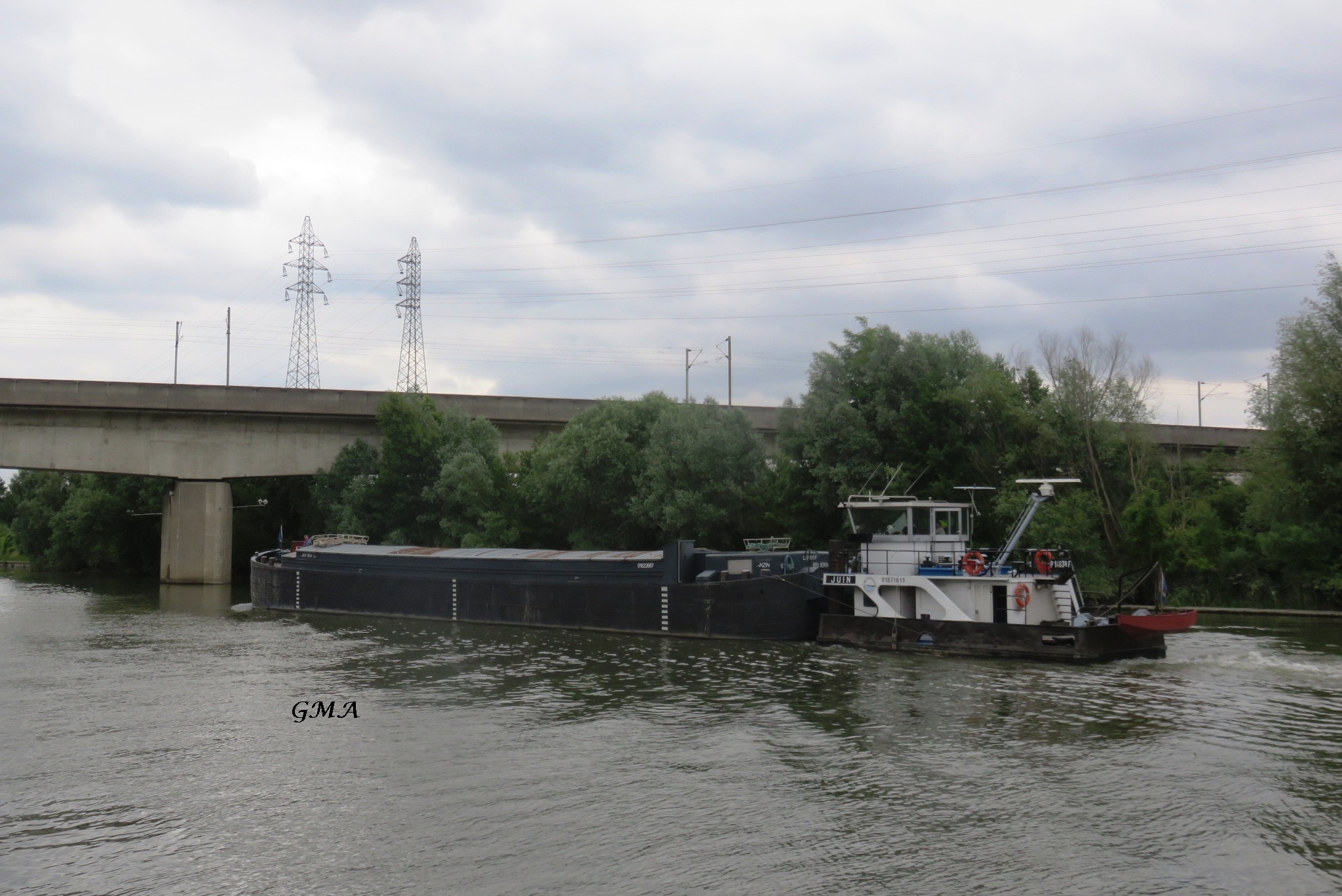 Quelques photos supplémentaires du convoi école du CFANI, propulsé par le micro pousseur "Juin". Ce pousseur appartenait autrefois à Morillon Corvol (aujourd'hui CEMEX). Le CFANI en a fait l'acquisition en 1980 ou 1981, je n'ai pas la date exacte en tête. Ce pousseur est équipé de 2 moteurs GM (type 6-71 de 180 cv unitaire), de 4 gouvernails et de 4 flankings (gouvernails de marche arrière). L'équipement comprend un radar, un combiné pilote/gyro, un GPS, un AIS, une cartographie (Tresco), 2 VHF. La barge habituellement utilisée est "Le Cap" (ex "MR1"). Une deuxième barge est utilisée également, il s'agit de la "Napadelis" (une ancienne ville d'eau de Morillon Corvol, l'ex "Luchon"). Le CFANI dispose également d'un automoteur citerne de 55m, l' "Aquanovis" (ex "Deauville" de Mr Peleman).