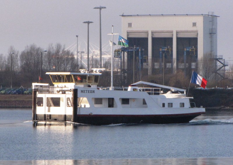 Sur la photo du haut de page le METEOR est brélé sur le ponton grue NAONED ( Nantes en breton) de la sté ETPO de Nantes.