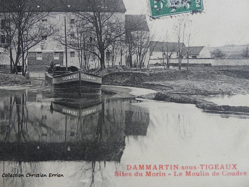 Deux cartes postales du début du 20e siècle montrant une flûte nommée GERMAINE sur le grand Morin à Dammartin sous Tigeaux. Est-ce que c'était le terminus de la navigation sur cette rivière?