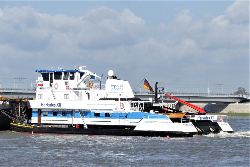 Herkules XII , 32,00 x 11,40 x 156 ton , Bouwjaar 1969 , Werf Rheinwerft Walsum in Walsum ( Duitsland ) , 2 x 1836 pk Caterpillar , ex Franz Haniel 12 , ex Herkules XII , eigenaar Imperial Shipping Group in Dbg-Ruhrort , ENI 04003960