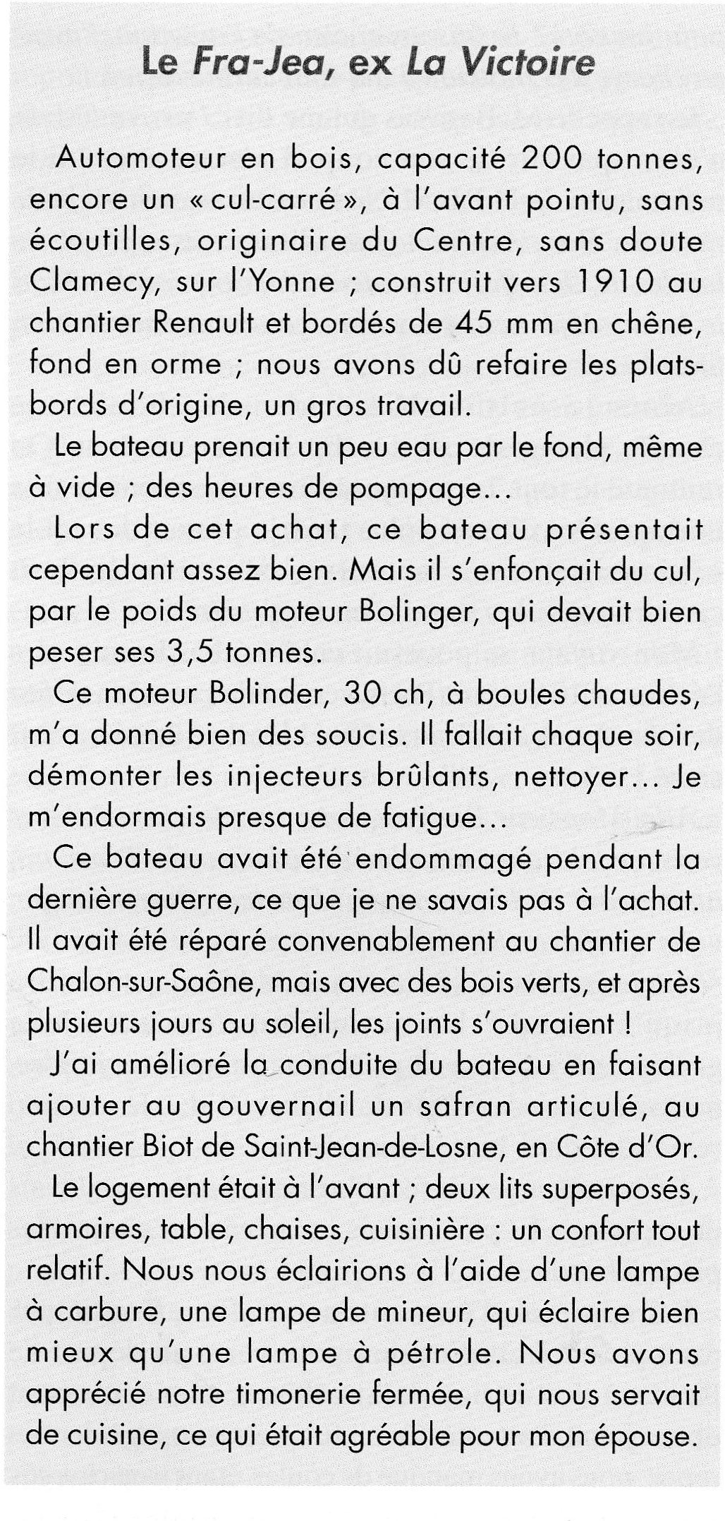François a écrit 7 pages du cahier pour relater ses pérégrinations avec ce bateau en bois....qui a été revendu en 1952 et a terminé ses jours dans le bassin de Montceau 'comme sur la CP)