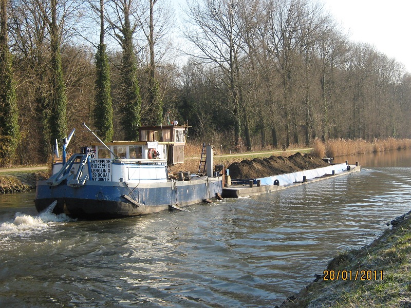 Canal de Louvain. Toujours avec la marquise hydraulique provisoire. Transport de terre entre Kampenhout et Tildonk. J'avais été averti par Vincent du site Vivre sur l'Eau