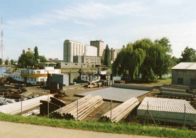 Deux pousseurs de la CNFR le MASEILLE et le BRUCHE pris en photo depuis la passerlle de l'écluse Nord à Strasbourg.