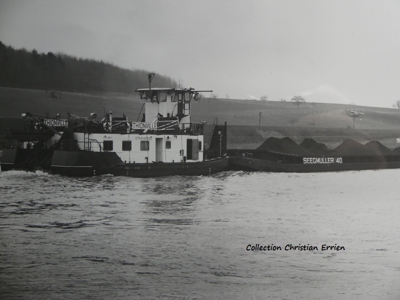 Il y a eu un autre pousseur THIONVILLE, 1820025, à la Compagnie Française de Navigation Rhénane. Construit en 1963 au chantier De Biesbosch à Dordrecht (NL), il change de nom en 1987 pour devenir SAARLOUIS. C'est sous ce nom que la CFNR le fera naviguer jusqu'en 1998, année de son déchirage à Amsterdam (est-ce que l'on dit aussi déchirage pour un pousseur?).