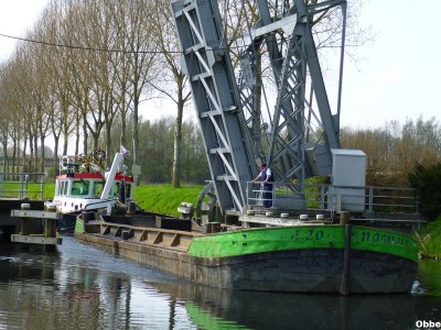 Dragage de l'Espierre du coté d'Estaimpuis Saint Leger. A la pousse des barges.