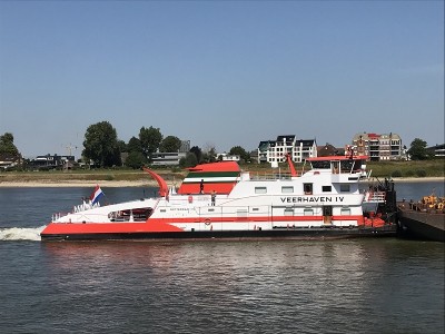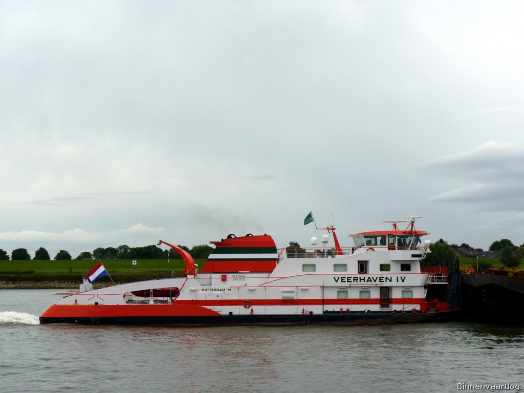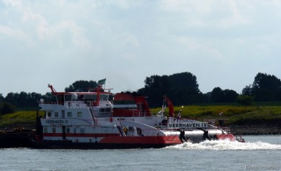Veerhaven IV Neushoorn , 40,00 x 15,00 x 1,74 , Bouwjaar 2013 , Scheepswerf Gebr.Kooiman in Zwijndrecht ( Nederland ) , 3x Wärtsilä 8L20 CCRN2 1380kW bij 1000 omw/min en Twee stuks Verhaar Omega 3 kanalen boegschroefunits gedreven door 2x Scania diesels DI-16 52M 441kW , eigenaar Thyssen Krupp Veerhaven BV in Rotterdam , ENI 02335449