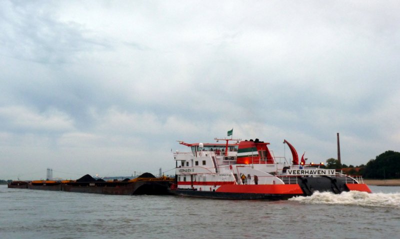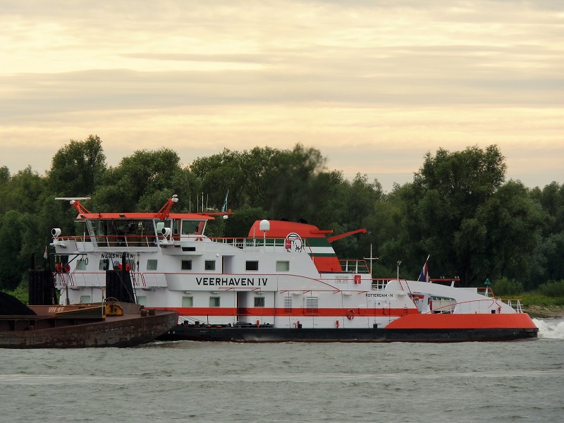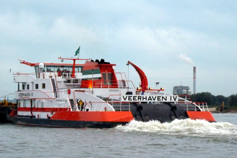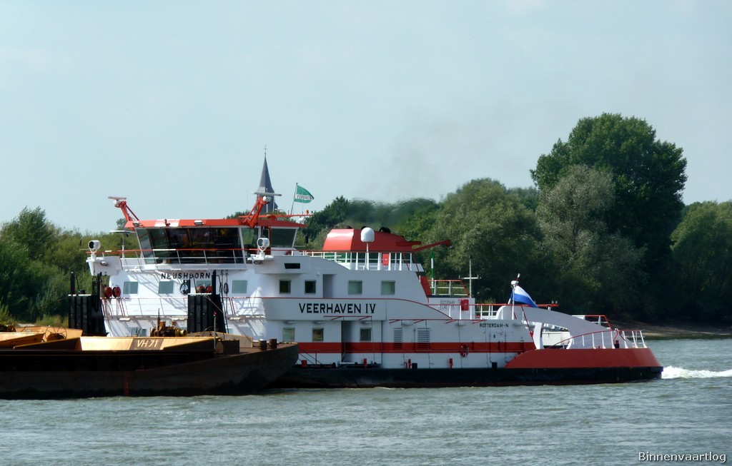 Veerhaven IV Neushoorn , 40,00 x 15,00 x 1,74 , Bouwjaar 2013 , Scheepswerf Gebr.Kooiman in Zwijndrecht ( Nederland ) , 3x Wärtsilä 8L20 CCRN2 1380kW bij 1000 omw/min en Twee stuks Verhaar Omega 3 kanalen boegschroefunits gedreven door 2x Scania diesels DI-16 52M 441kW , eigenaar Thyssen Krupp Veerhaven BV in Rotterdam , ENI 02335449
