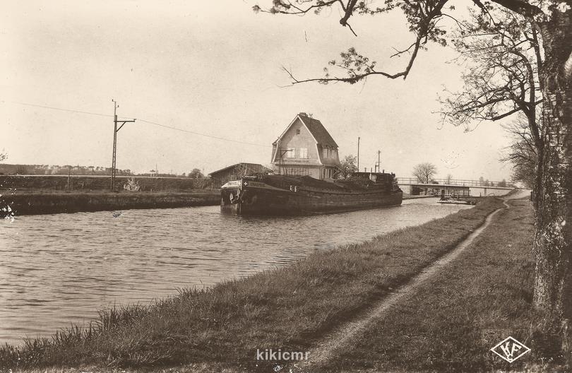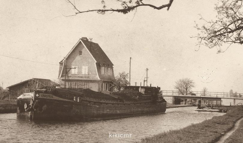 Carte postale du canal du Rhône au Rhin, branche Nord, à Munchhouse (68), écrite en 1955 :