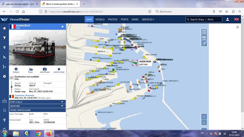 Vu sur la web-cam du Gilla et recherché sur vessel finder il est maintenant en Roumanie