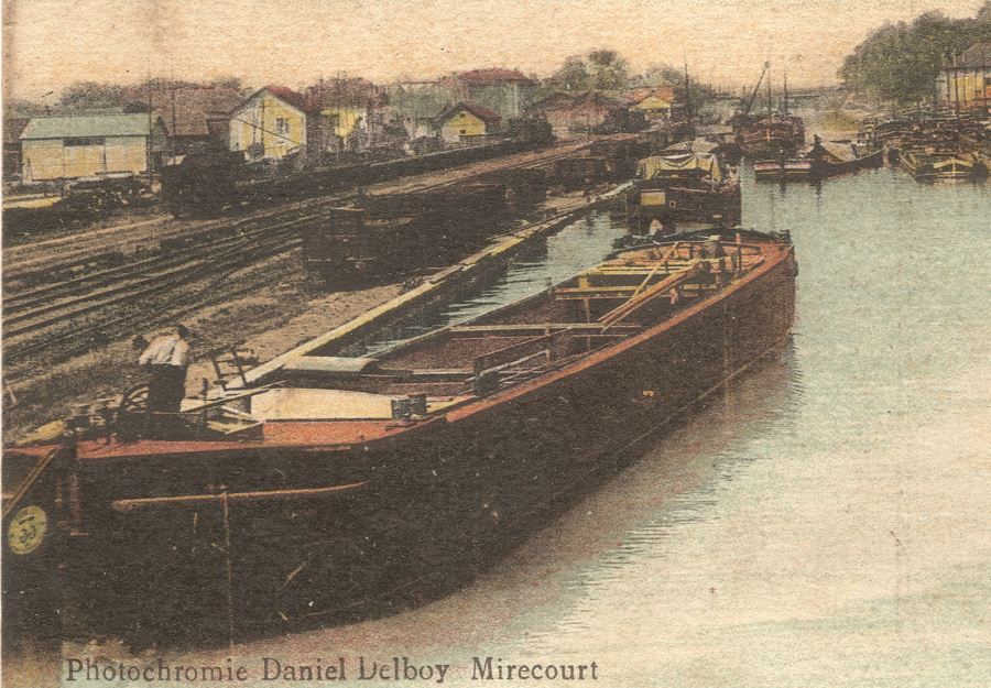 (petite précision utile : ça fait des années que j'ai cette CPA colorisée, mais à l'époque, on m'avait dit que je me trompais, que ce n'était pas un Solvay... toujours est-il qu'à présent, d'autres témoignages m'ont confirmé qu'il s'agissait bien d'un bateau de cette flotte de Dombasle ! Toutefois, cette carte postale figure dans le livre de Mme Parent "Les SR", illustrant un hypothétique MD33)