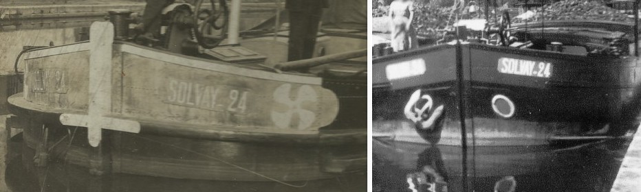 voici une autre photo du SOLVAY 24 vu de l'avant, chargé de coke, on voit les modifications du nez par rapport à la carte-photo ci-dessus :