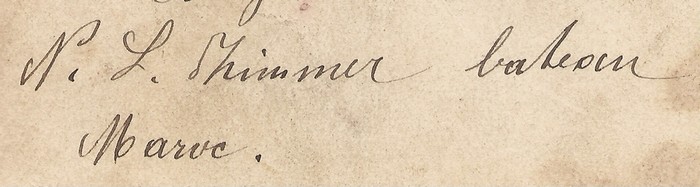 Enfin, la signature, là aussi deux indices : le nom du marinier et la devise du bateau. Respectivement N. L. Zimmer et MAROC, ou MARVE, ou MARNE ? J'ai un petit peu de mal avec l'écriture, alors je vous l'ai numérisée, vous pourrez vous faire votre idée :