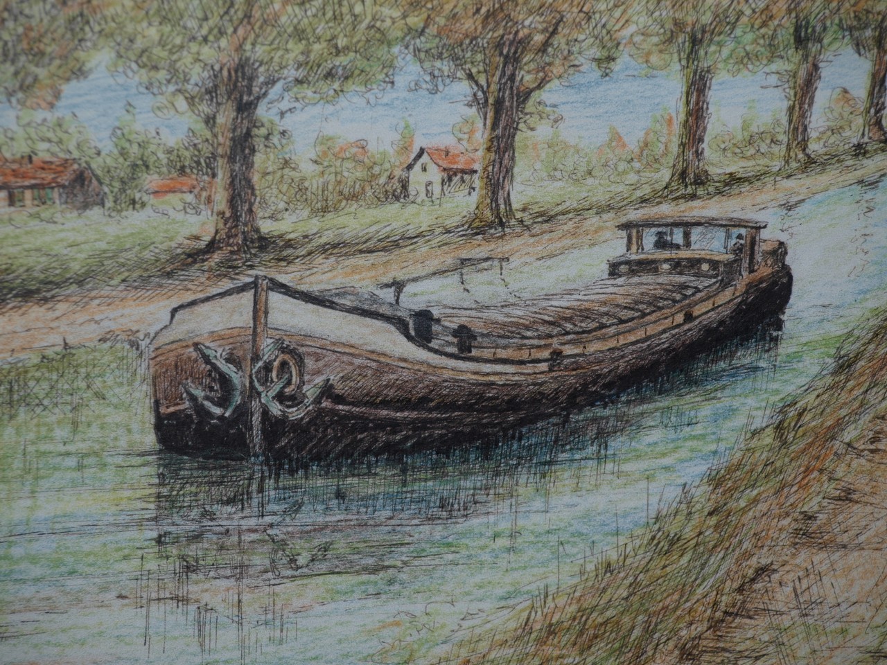 Peinture à l'huile ou pastel ( voir crayon ) ? L on reconnaît le canal vers Vitre le François. Mon épouse à réalise une toile avec le même environnement. Qui est d ailleurs sur Vv.