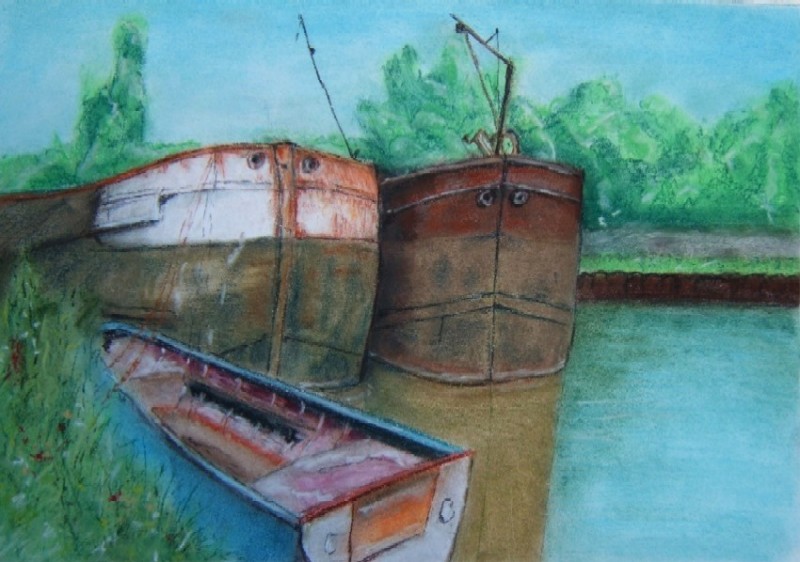 Aujourd'hui je vous presente une realisation de mon epouse Sonia.Il lui arrive aussi de peindre des bateaux Elle utilise la technique du pastel.