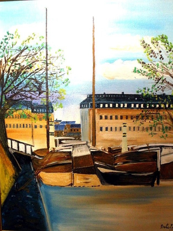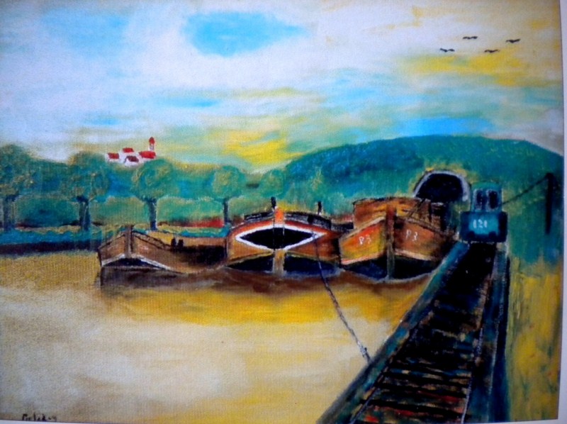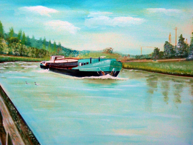 un tableau un peut naïf mais j aime la couleur cette cène ce passe dans le canal de Douai nord