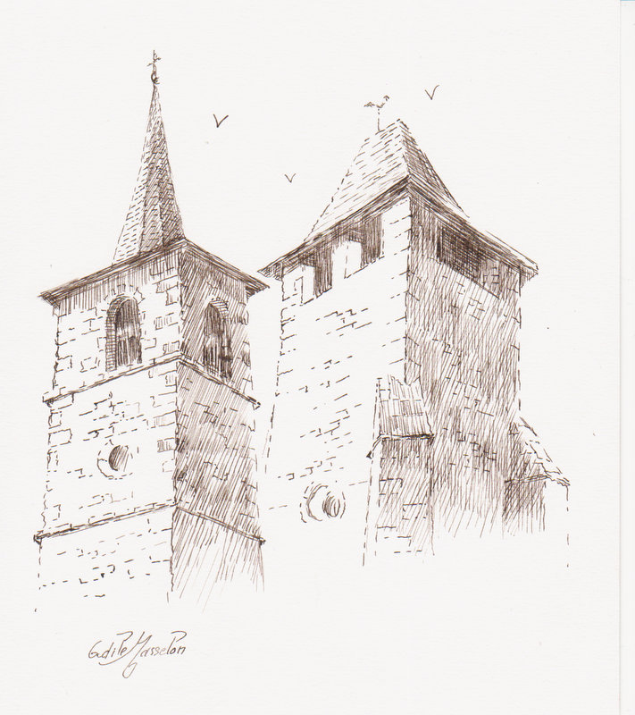 Les deux clochers appartiennent à deux églises différentes.Juste une maison les sépare.