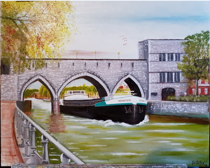 Claude, j aime bien la composition avec le bateau, le pont en acier et le musicien. Il n y a rien de plus beau qu un bateau et son environnement naturel qui est l eau. Continuez de nous faire rêver avec vos toiles. Baron