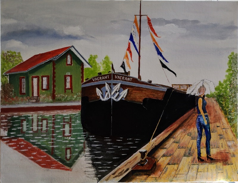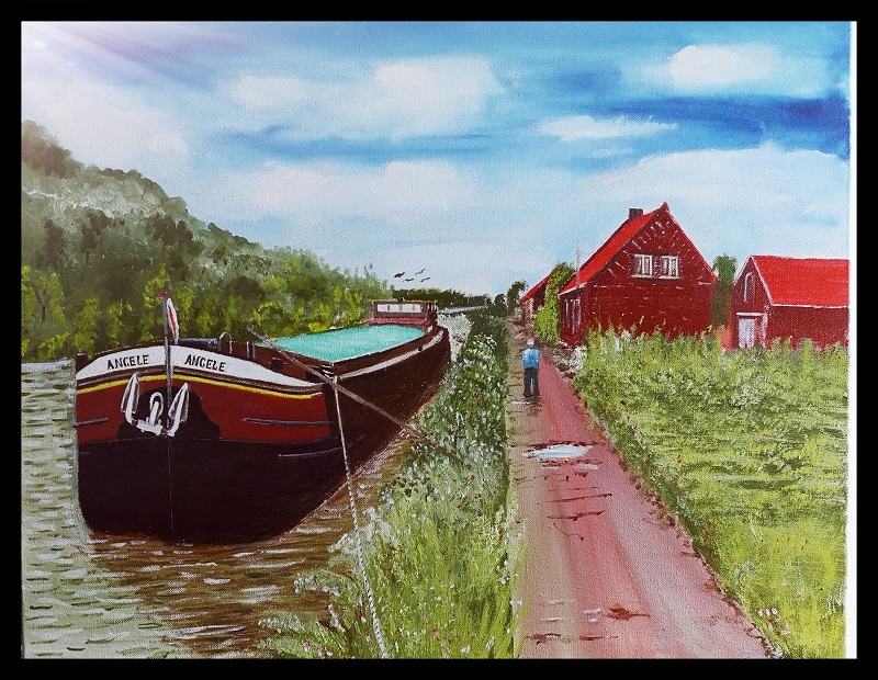 bonjour!!aujourd’hui cette peinture du bateau Angele des souvenirs de Béthune dans les années 1970nous étions souvent amarrer devant la maison de ma tante Gilberte