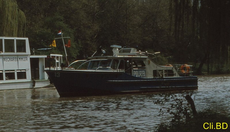 Vedette rapide de la Polizei "13" prise a proximité de Heilbronn le 3 mars 1986.