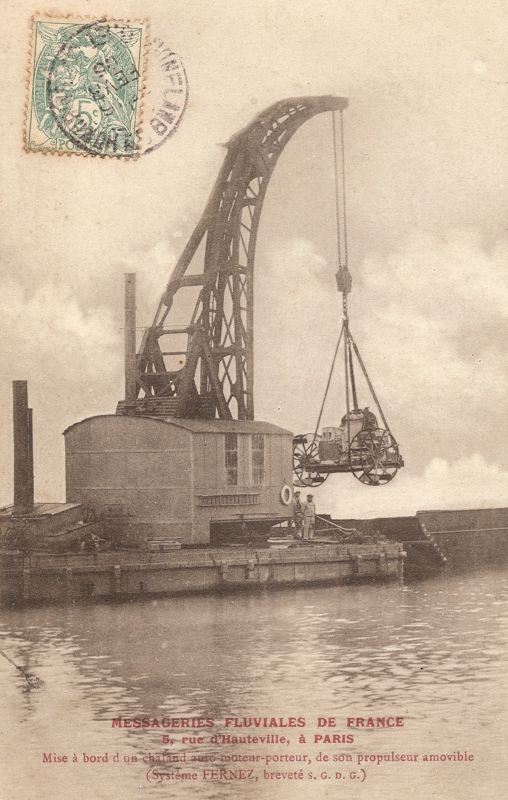 Je vous répondrai alors qu'on ne trouve que des traces anciennes des Messageries Fluviales de France dans la littérature, les vieux papiers et les cartes postales, alors je pense qu'elle aurait pu être rachetée vers 1910 par l'HPLM! Ne lit-on pas d'ailleurs dans le livre dont il est question ci-dessus : "Le matériel de la Compagnie (HPLM) comprend des types très variés, résultant de la diversité des fleuves, rivières et canaux qu'elle dessert, et de l'absorption par elle d'un certain nombre de Compagnies, dont les bateaux présentaient de notables différences"?