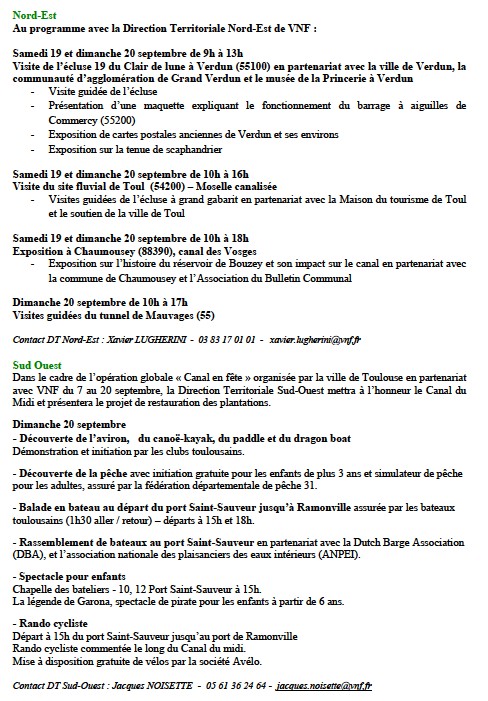 VNF a eu la bonne idée de publier une liste des événements organisés pour les Journées du Patrimoine en lien avec son réseau fluvial :