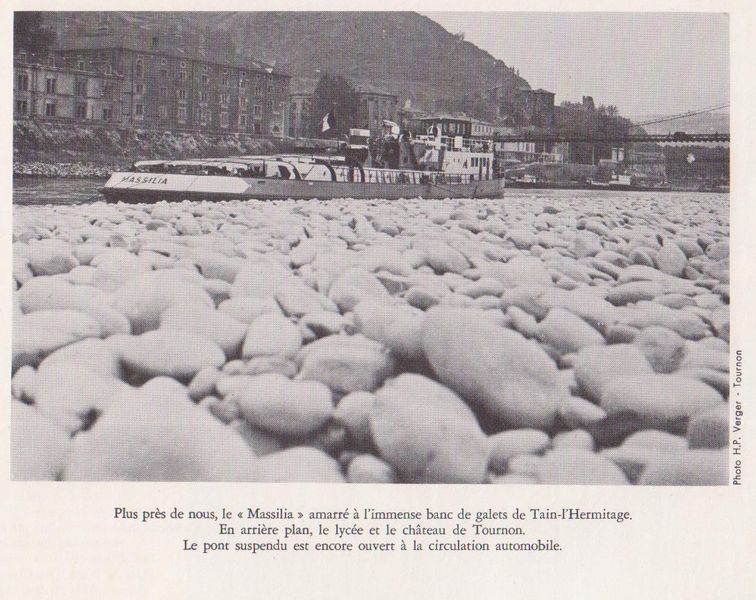 Il était amarré devant la mairie, peu reluisant "le PANTHERE : avant de venir chez nous il était sur le Rhin, venu par la mer du Nord. C'est moi qui ai enlevé le pavillon suisse que j'ai remplacé par le drapeau tricolore. Par la suite, il a été appelé MASSILIA.