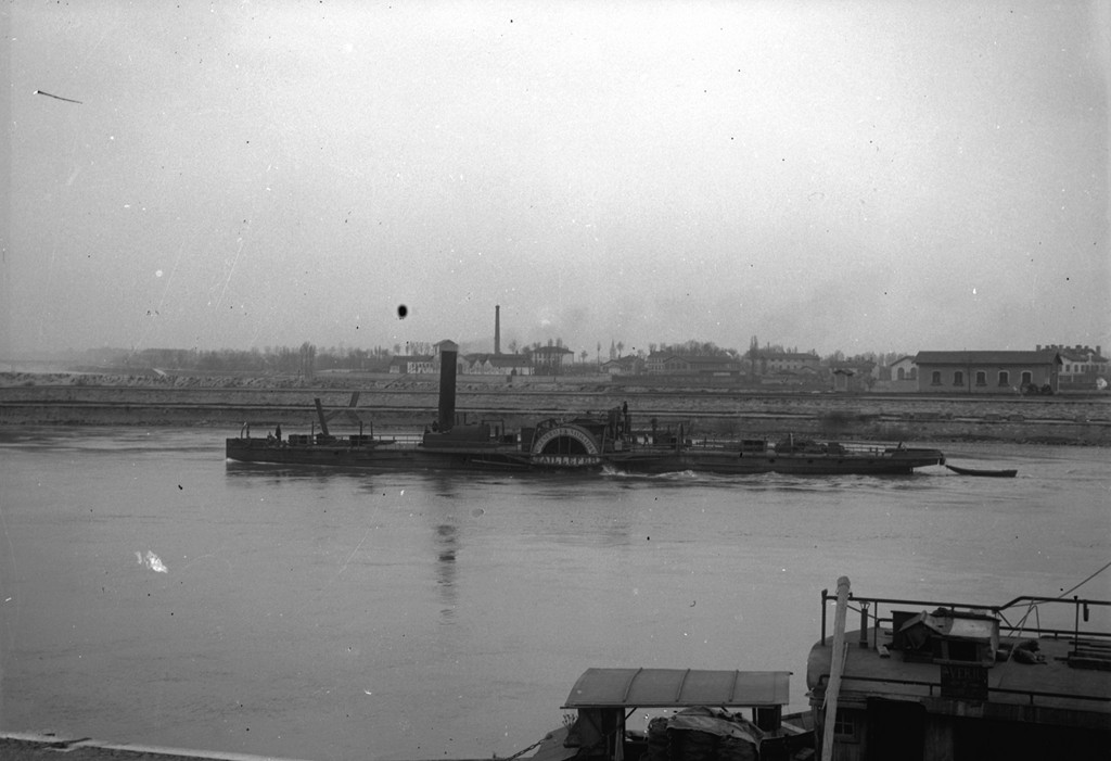 Le remorqueur TAILLEFER (Chalon-sur-Saône), de remonte devant le château du roi René à Tarascon. En fait jusqu'à l'ouverture de l'écluse en 1970, la "route" était rive droite, côté Beaucaire sauf avec de grosses eaux on l'on pouvait envisager de passer par le bras de Tarascon.
