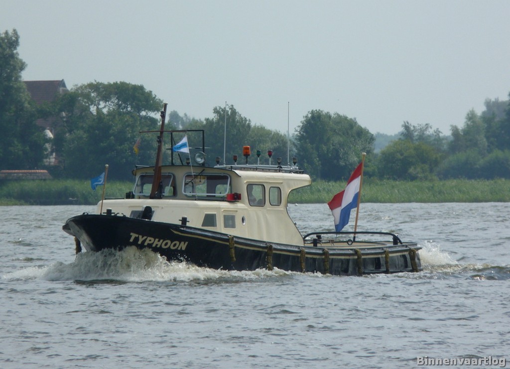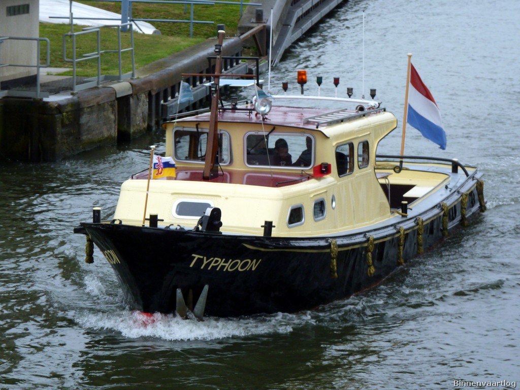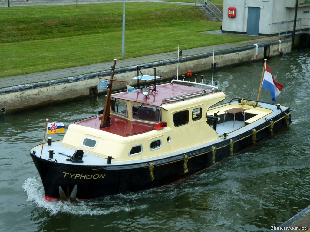 Typhoon , 12,17 x 3,45 x 1,10 , Bouwjaar 1958 , Werf VEB Yachtwerf in Berlijn ( Duitsland ) , 168 pk DAF , eigenaar N. van Heugten in Roermond