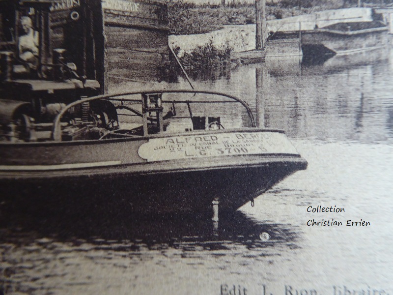 je possède également cette carte et lorsque l'on zoome sur l'arrière de ce remorqueur la devise est ALFRED BERGERE et non ALBERT BERGERE.