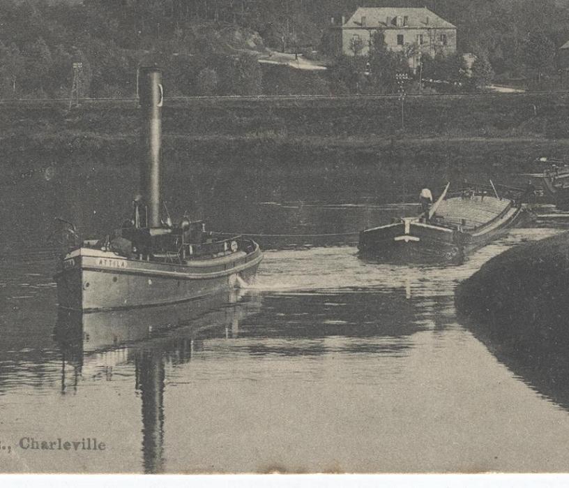Ce remorqueur belge, vu ici à Charleville sur la Meuse. Plus tard elle est devenue le CHARENTE français sur le Rhin.