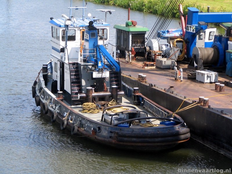 IJsland , 21,00 x 6,00 x 2,60 , 18 ton , Bouwjaar 1955 , Werf Bodewes in Millingen a/d Rijn ( Nederland ) , 690 pk Detroit , ex Pluto , ex Eerland 16 , ex IJsland , eigenaar A. Rigter (Rimar Services) in Nijmegen , ENI 02309470