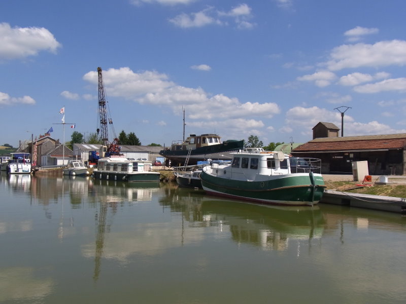 Le chantier á Pont-à-Bar. Il y a 27 ans entre cettes deux photos. Une installation centrale d`une chantier est disparue: la pente et les rails pour tirer des "grandes" péniches à la terre. Pour les petits bateau la grue et suffisante en 2013.