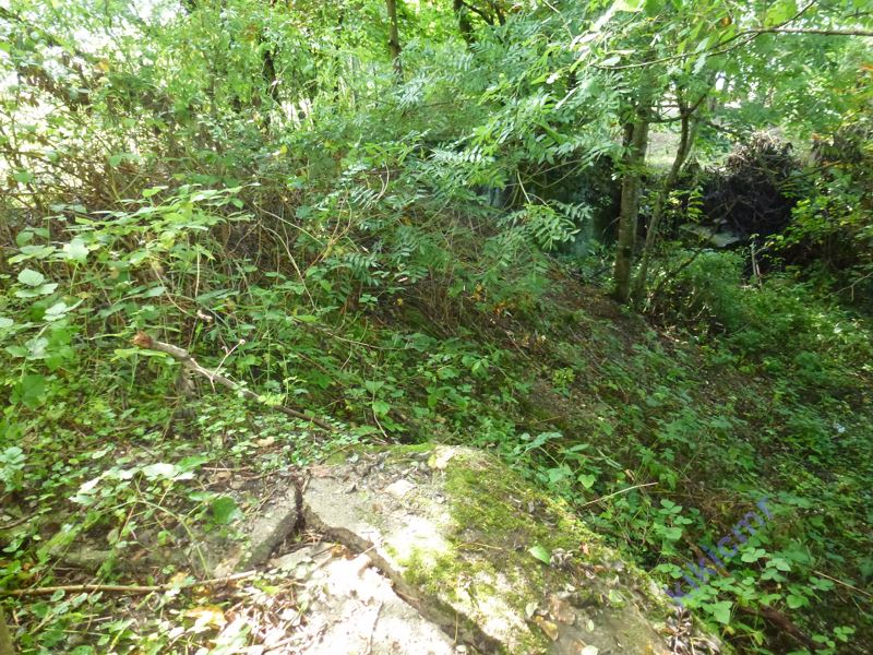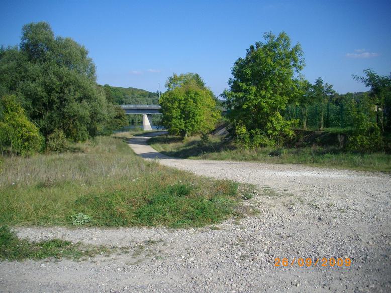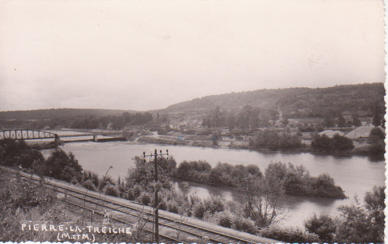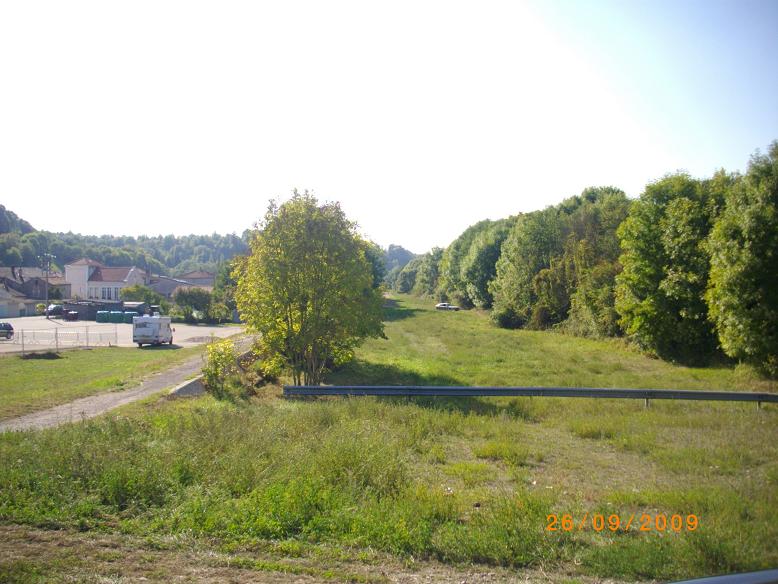 - l'entrée du chantier vue de la digue ; malheureusement, la végétation cache tout... il faut repérer les murs en béton qui sont visibles sur le bas de la CPSM publiée par Guy