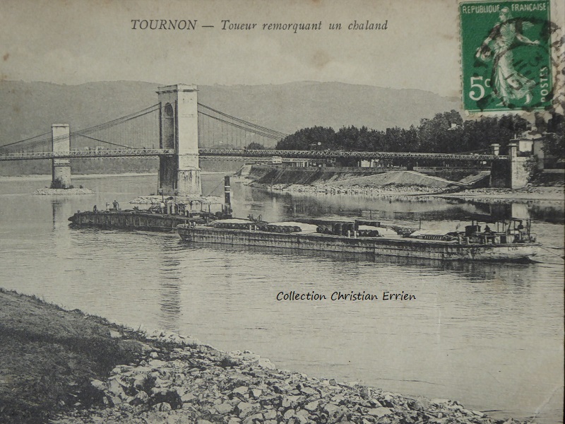Voici une barque du Rhône sur cette cpa prise à Tournon en 1912
