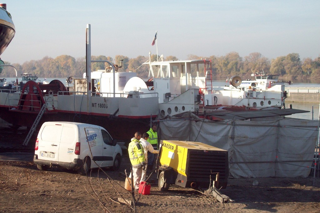 Entretien du bac a Barriol ,il fait toute l'annee la traverse du petit Rhone