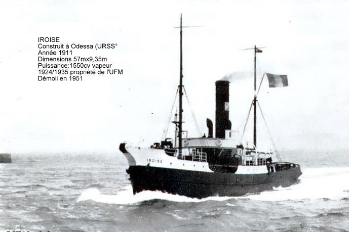 1/10/1924 Union Française et Maritime, Paris, renamed IROISE (based at St Nazaire and Brest) (FRA flag, reg St Nazaire, c/s OUTE)